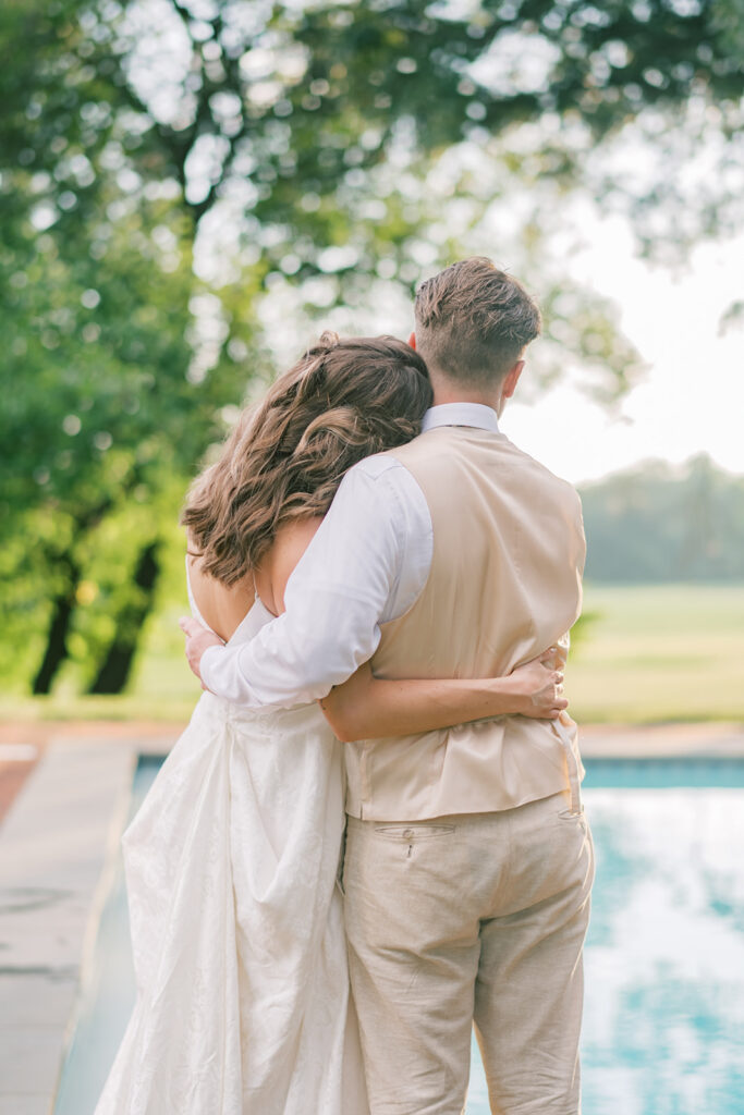 Brittland Manor’s poolside cocktail space and historic manor give a timeless yet approachable feel. The tented reception offers a clean, flexible backdrop for capturing the full story of a wedding day.